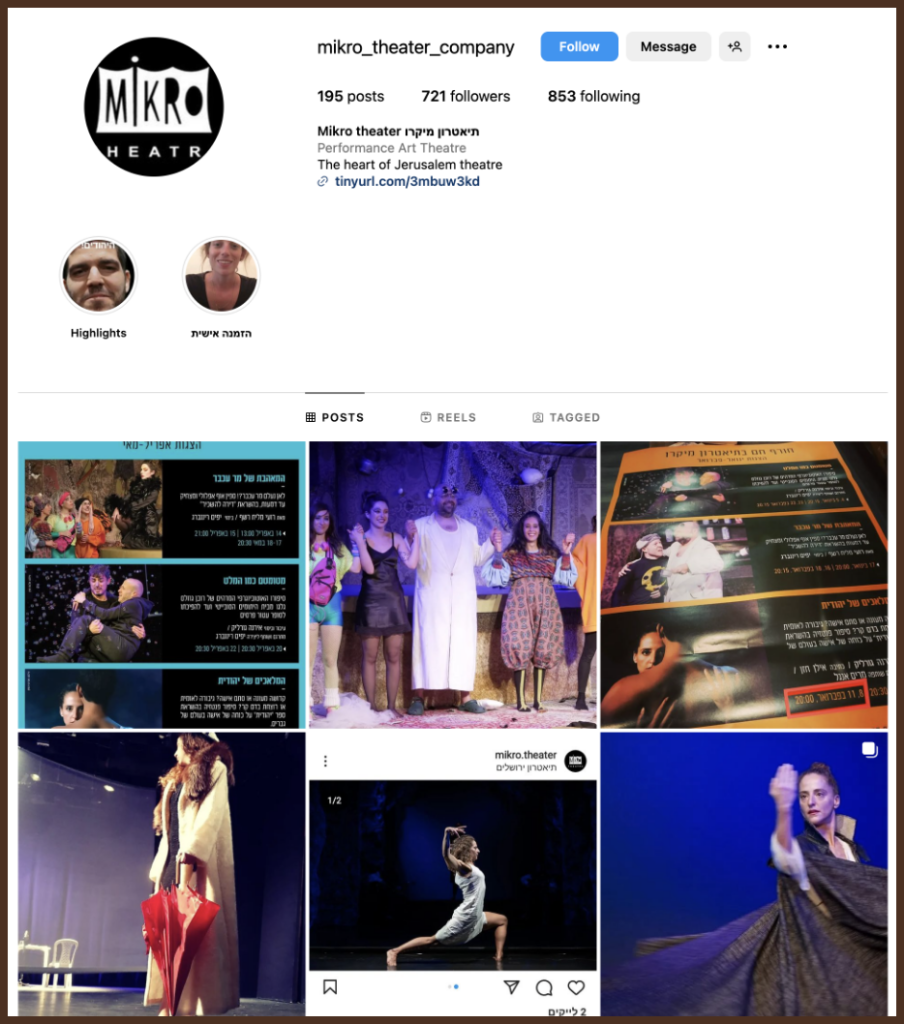 תיאטרון מיקרו הינו תיאטרון ירושלמי אמיתי. הוא נוסד כבר באמצע שנות ה- 90 על ידי אשת התיאטרון, אירינה גורליק שמנהלת אותו אמנותית עד עצם היום הזה. רוב רובם של שחקני התיאטרון והצוות הטכני והאמנותי הינם ירושלמים ושמו לנגד עיניהם את המטרה ליצור תיאטרון איכותי בירושלים